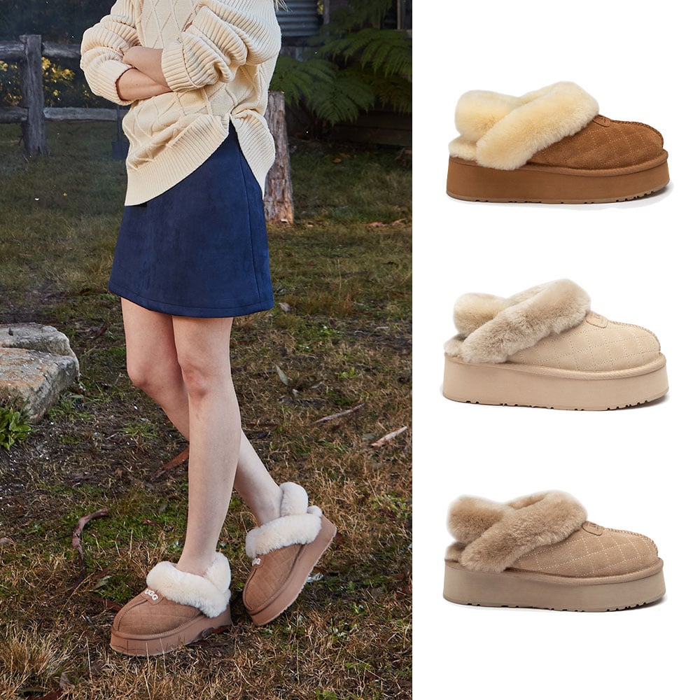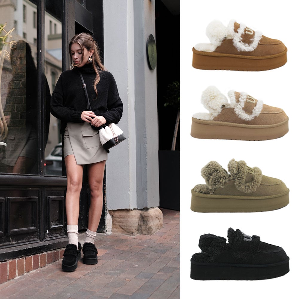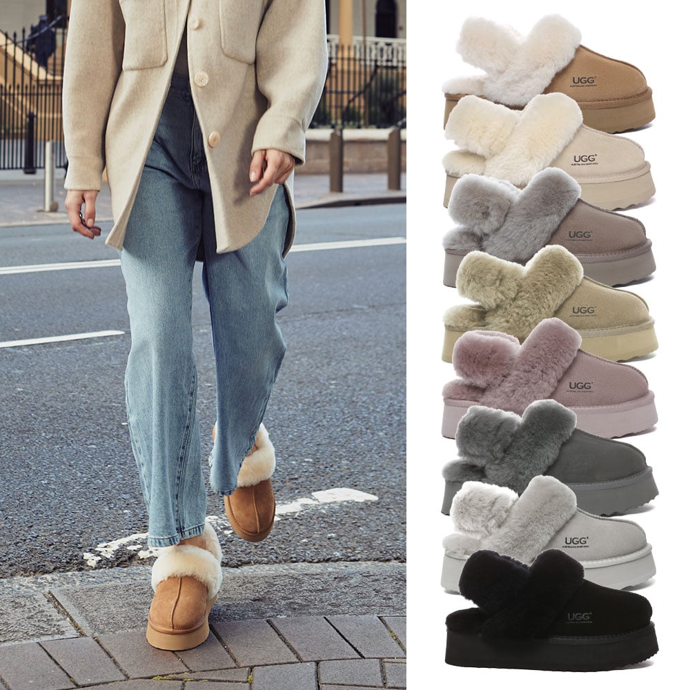 [빠른무료배송] 호주정품 럭스오즈 플러피 플랫폼 탈부착 밴딩 어그 슬리퍼 (굽5cm) LUXOZ UGG LU002