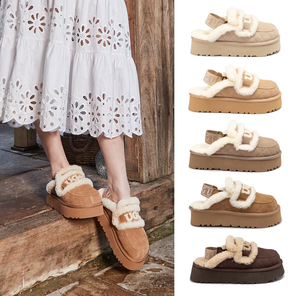 [무료배송] 호주정품 오즈라나 에스텔라 로고 시어링 오픈 슬리퍼 (굽 2cm) OZLANA UGG OZ3010